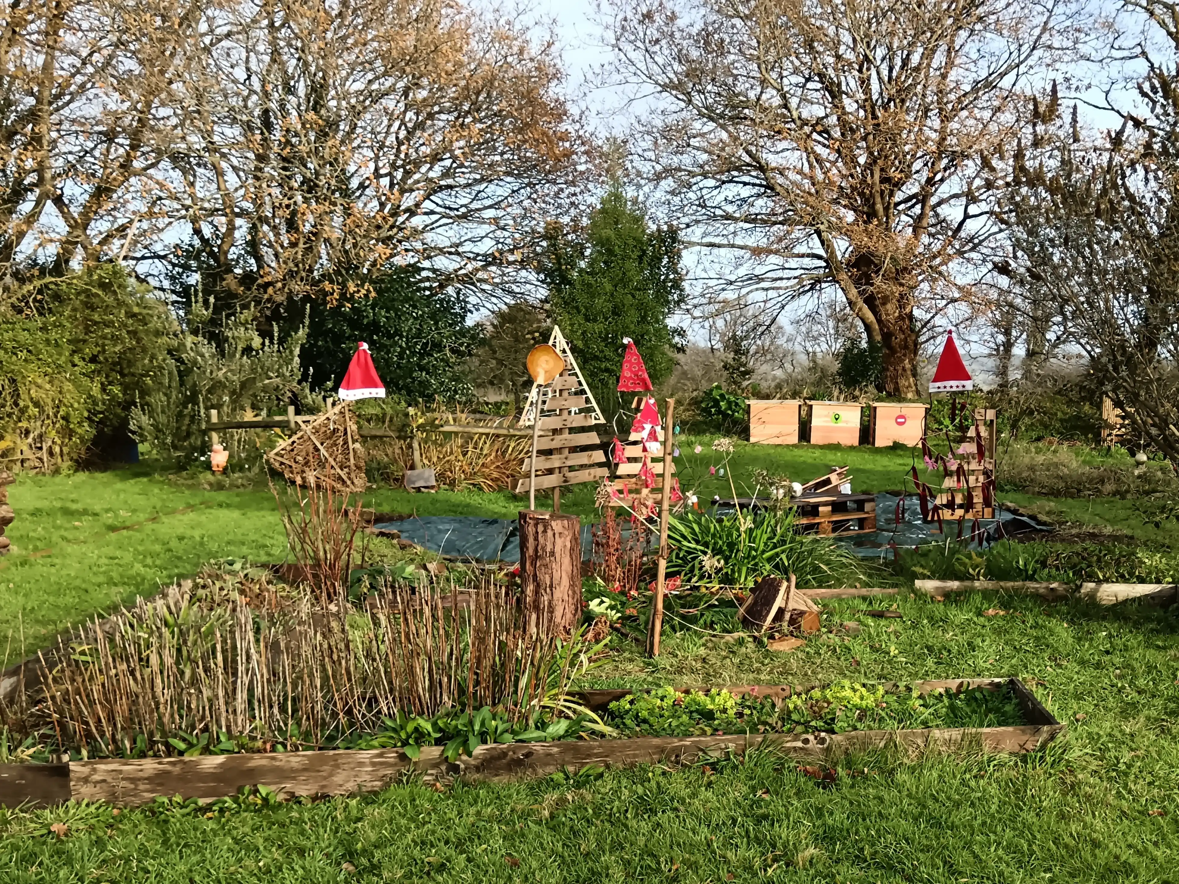 C'est notre coup de cœur de Noël, découvert par hasard en passant du côté du Jardin des Greg'Amis, le jardin partagé qui se trouve impasse du Radic à Grand-Champ, derrière la Médiathèque. Poétique et joyeuse, cette mise en fête du jardin est l'œuvre de l'Association du même nom*.